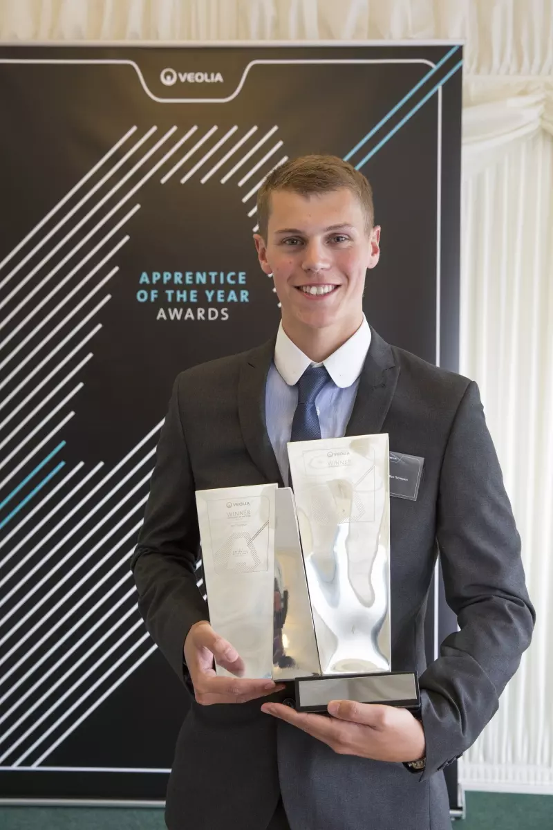 Skills Minister, Nick Boles MP and Veolia’s Senior Executive Vice-President, Estelle Brachlianoff, presented its 2015 Apprentice of the Year Award to Ben Thompson, a twenty-two year old electro-mechanical engineering apprentice.